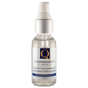 Hyaluronic (PUR) Hydrating Serum, the serum for everyone, imparts moisturization, plumpness and limits trans-epidermal water loss. Hyaluronic acid is the foundation for many Quannessence products and is a powerful humectant that absorbs 1000x its weight in water and has been shown to offer many healing properties for the skin.
